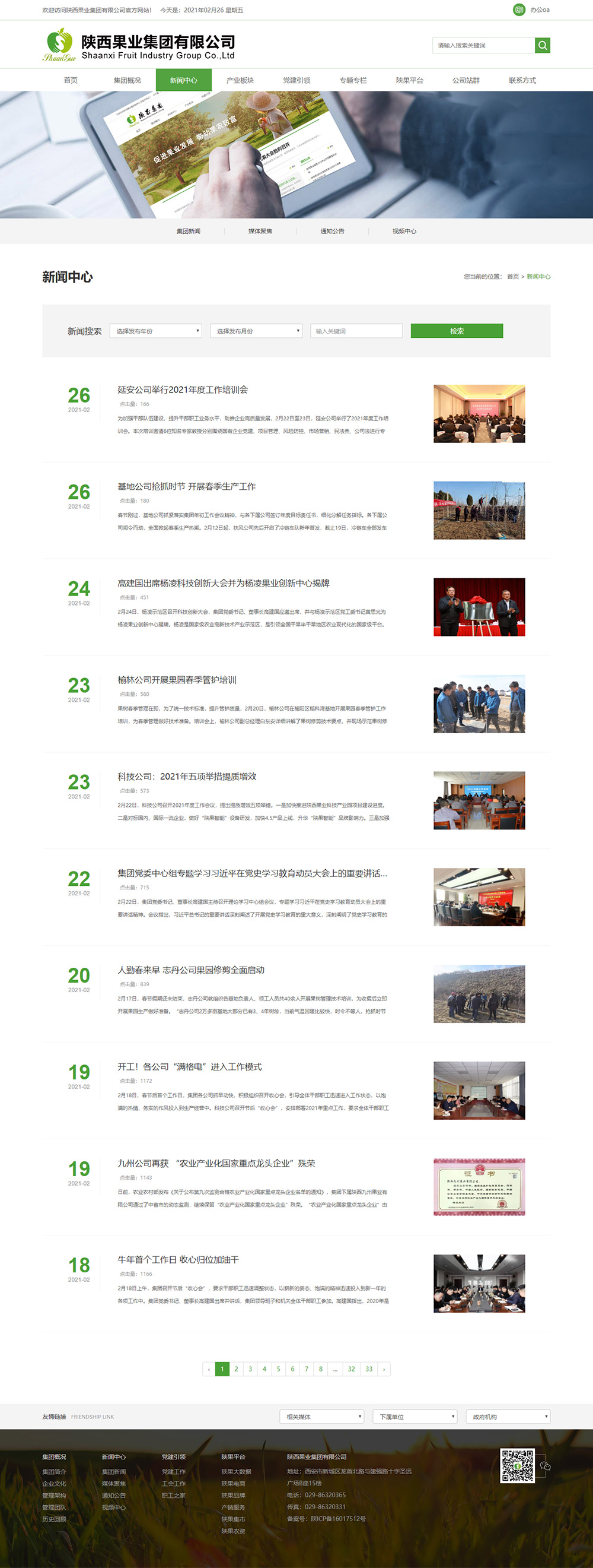 陜西果業(yè)集團是省政府組建的國有企業(yè),2015年10月掛牌成立,注冊資本金5億元。組建陜果集團是省政府按照現代工業(yè)、流通、金融、生態(tài)理念,“實(shí)施大企業(yè)集團引領(lǐng)戰略”,推動(dòng)我省果業(yè)轉型升級,實(shí)現由果業(yè)大省向果業(yè)強省轉變的一項重要舉措。