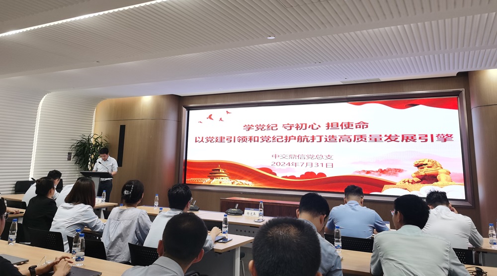 7月31日,中交鼎信黨總支開(kāi)展警示教育暨黨紀學(xué)習教育專(zhuān)題黨課活動(dòng)。中交資本紀委辦副主任趙春利出席并作警示教育,中交鼎信黨總支書(shū)記、總經(jīng)理楊文兵講授題為《學(xué)黨紀 守初心 擔使命 以黨建引領(lǐng)和黨紀護航打造高質(zhì)量發(fā)展引擎》的專(zhuān)題黨課。